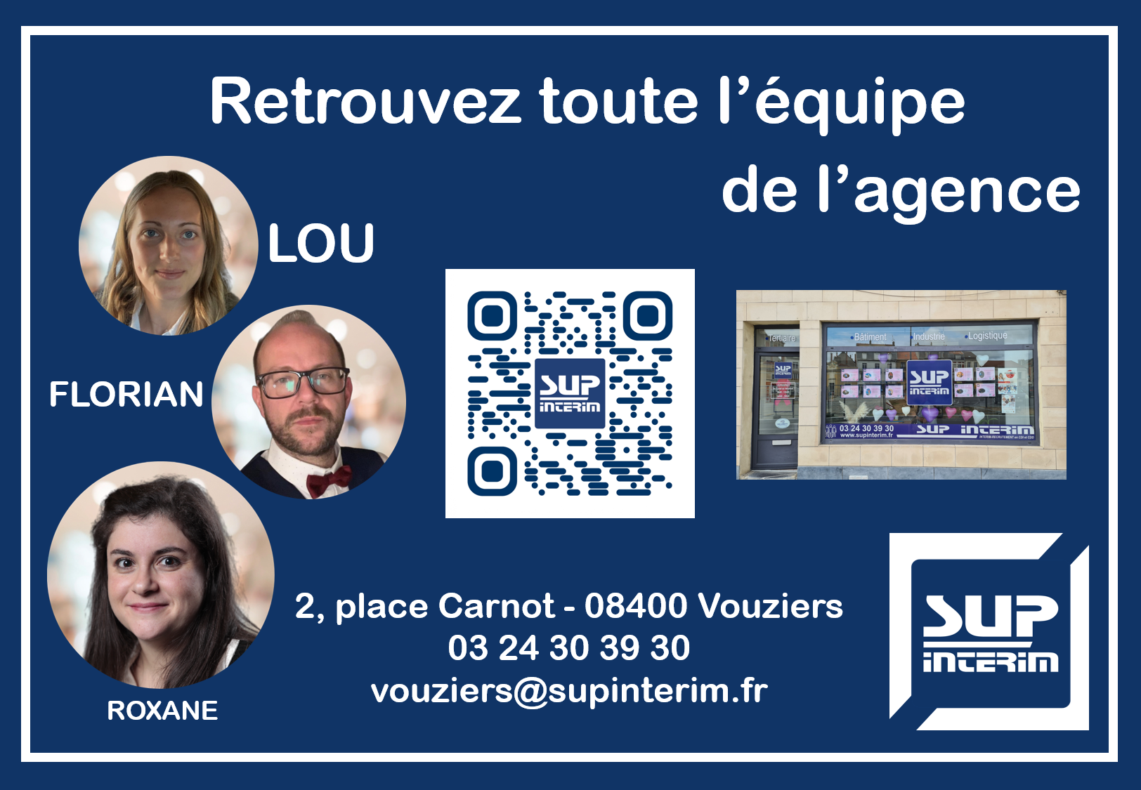 SUP INTERIM présente à Vouziers depuis 2011 vous accueille pour tout recrutement. L'agence est un acteur majeur de l'intérim pour être la seule installée sur le bassin Vouzinois.
